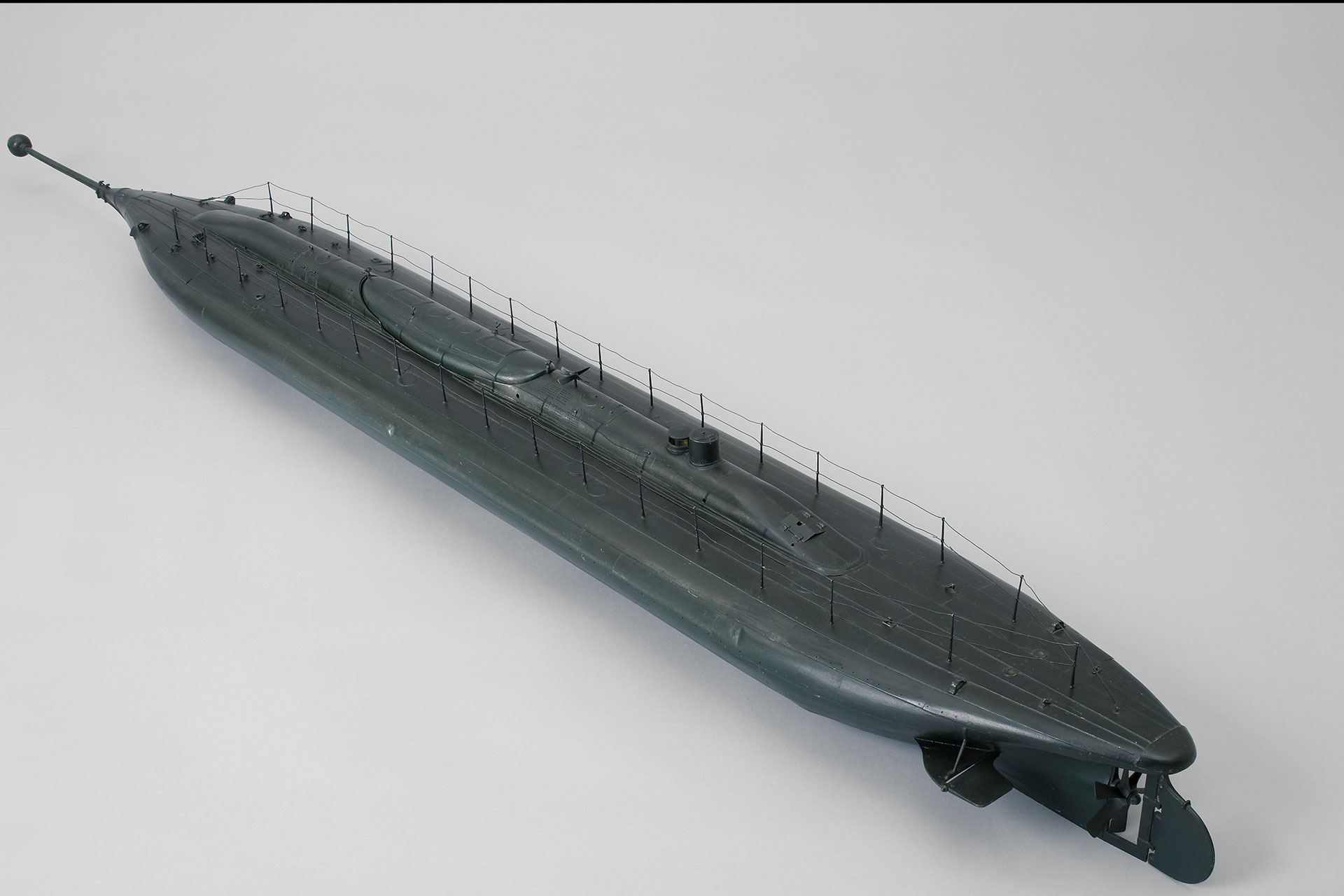 C’est le premier sous-marin propulsé par un moteur à air comprimé. Long de 42,50 m, il déplace 420 tonnes et embarque sept membres d’équipage. Son autonomie et sa vitesse restent limitées.