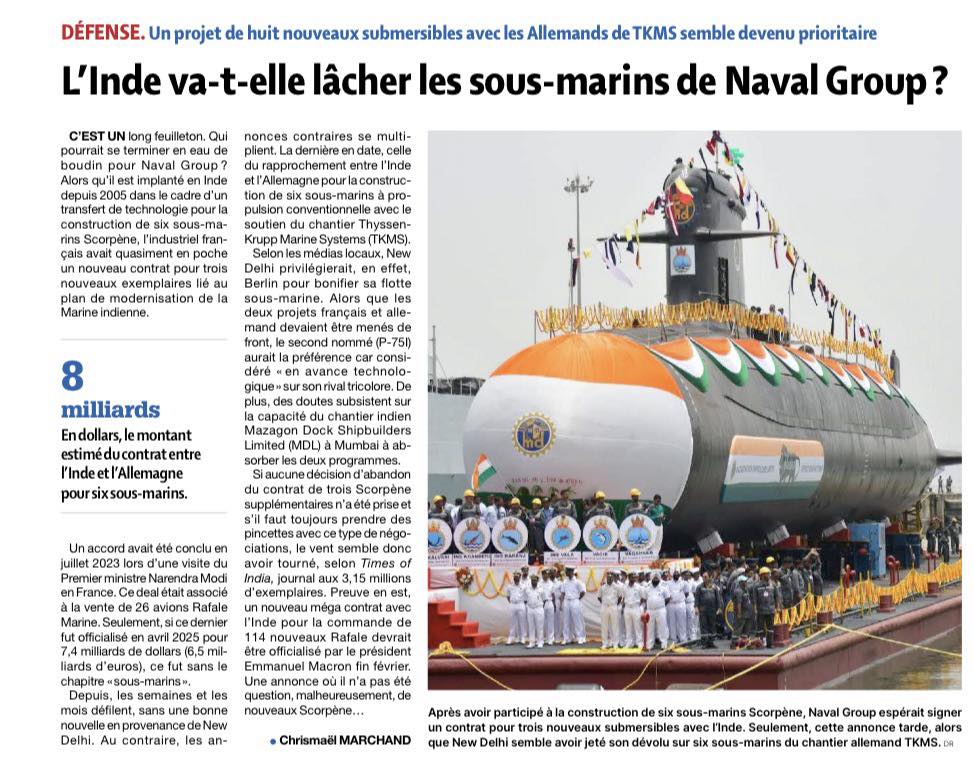 Pour compléter ce dossier, le ministère de la défense indien déclarait dans la presse le 23 janvier 2023 : « Dans un coup de pouce majeur à «Aatmanirbhar Bharat», le système de propulsion indépendante de l’air (AIP) basé sur des piles à combustible du Laboratoire de recherche sur les matériaux navals (NMRL) de DRDO sera bientôt installé à bord de l’INS Kalvari. Un accord a été signé entre les hauts responsables du NMRL et Naval Group France à Mumbai le 23 janvier 2023 pour étendre la coopération afin d’entrer dans la phase de conception détaillée pour l’intégration des AIP indigènes dans les sous-marins de la classe Kalvari. Dans le cadre de cet accord, Naval Group France certifiera la conception de l’AIP pour l’intégration dans les sous-marins. »